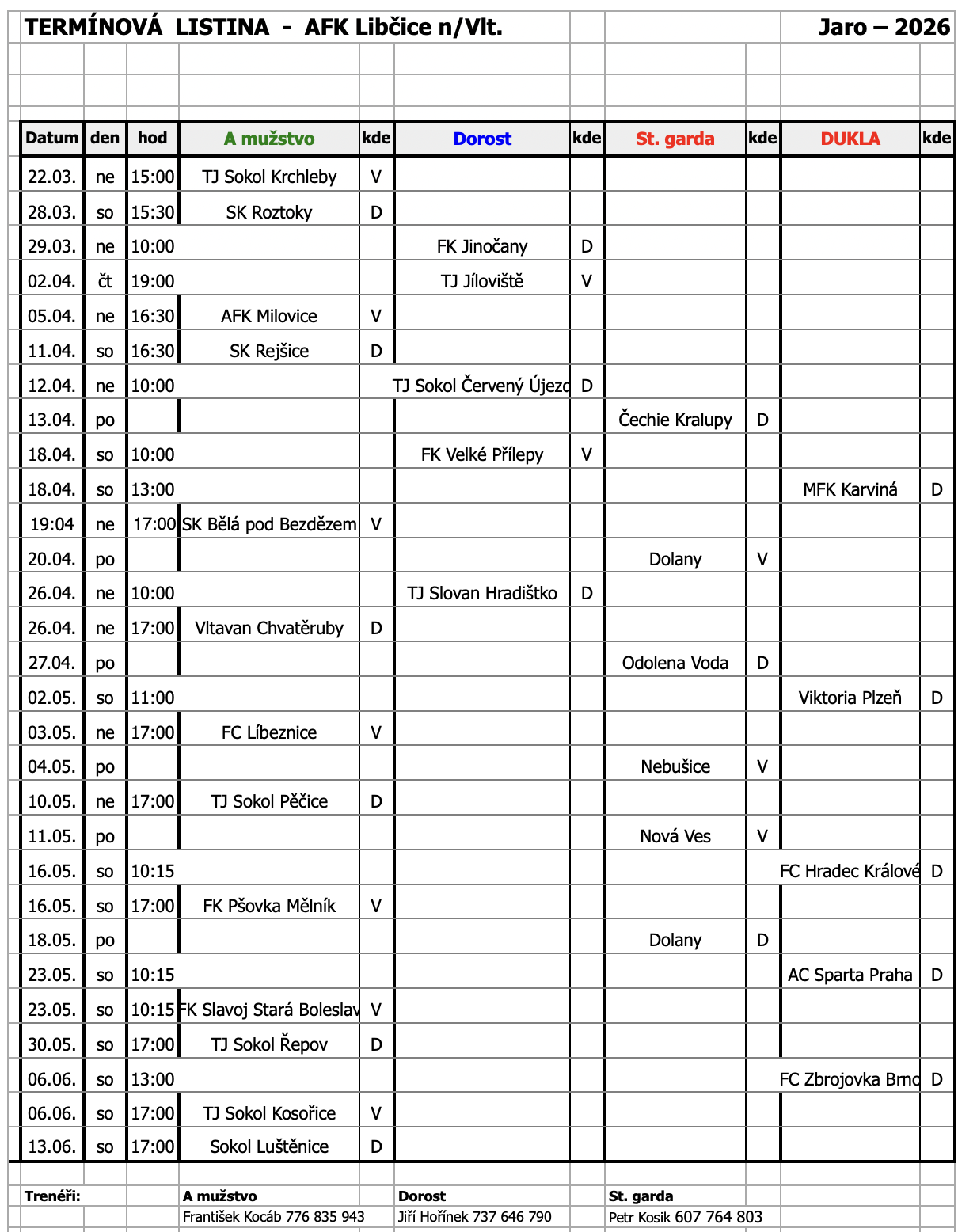 Autobus a rozpisy zápasů jaro 2026 / A team - AFK Libčice